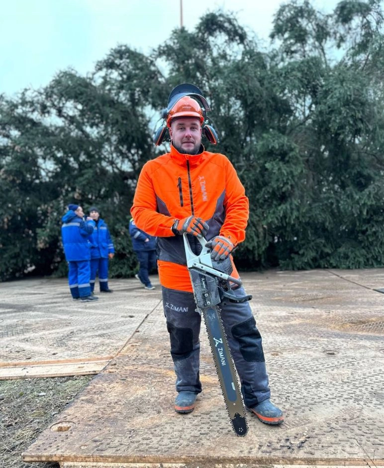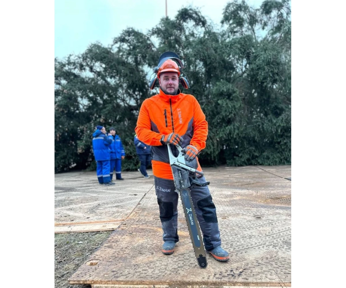 Максим Рябов — опытный лесник, человек, для которого работа с лесом — это не просто профессия, а настоящее призвание. Его бескомпромиссный подход к делу и внимание к деталям идеально сошлись с мощной и надёжной техникой, представленной брендом ZimAni. Максим был полностью снаряжен фирменной специализированной одеждой ZimAni, включая защитные перчатки, шлем и костюм, которые обеспечивали ему максимальную безопасность и комфорт.